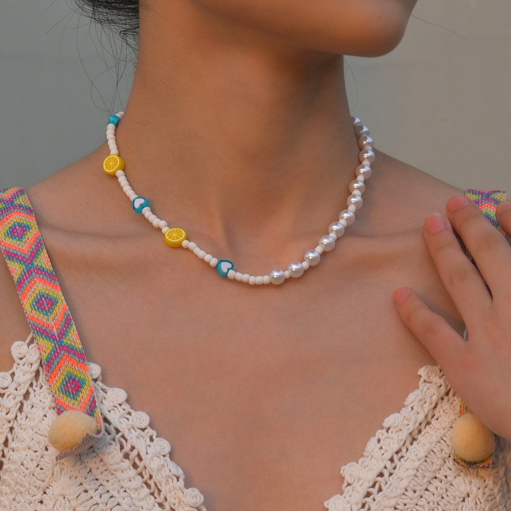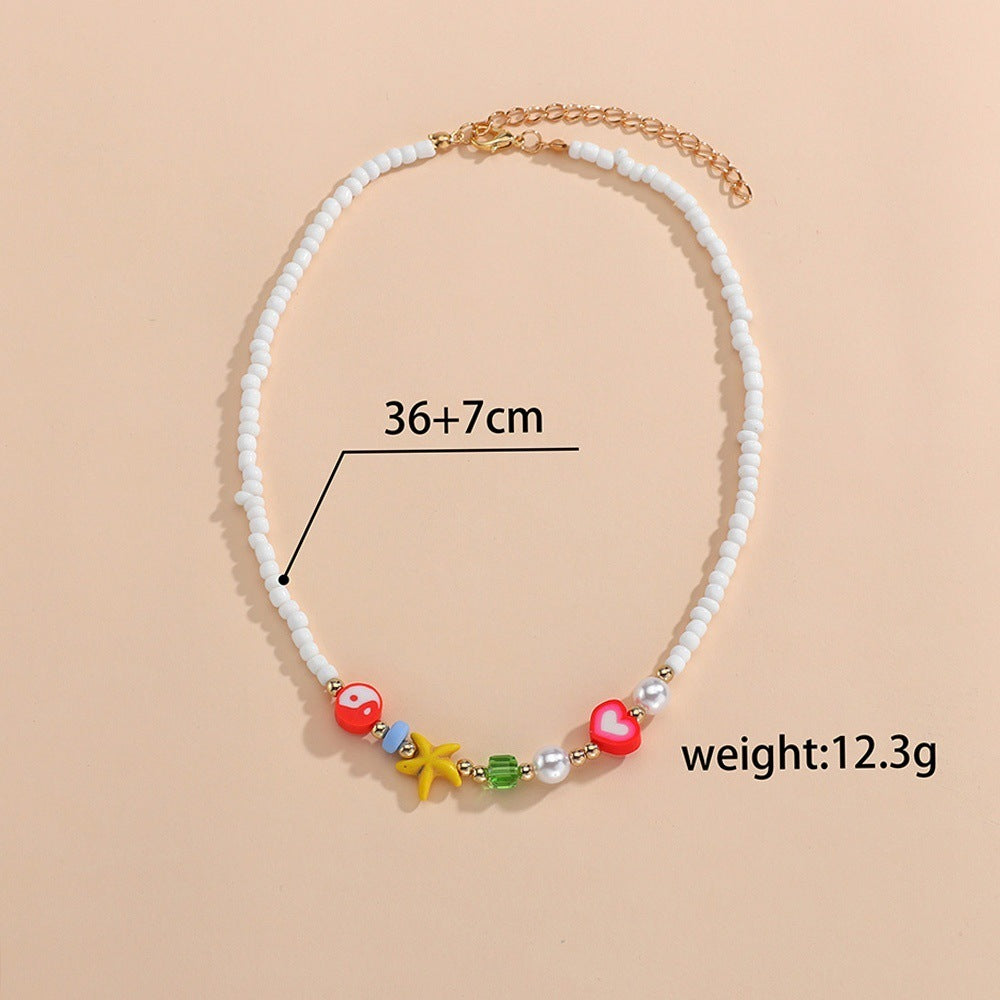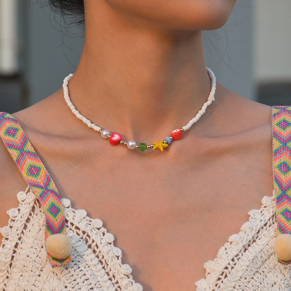 Embrace coastal elegance with the Thalassa Turquoise Starfish Necklace, featuring vibrant resin love hearts and starfish beads for a bohemian-inspired UK summer look. Enjoy free shipping on orders over £50.