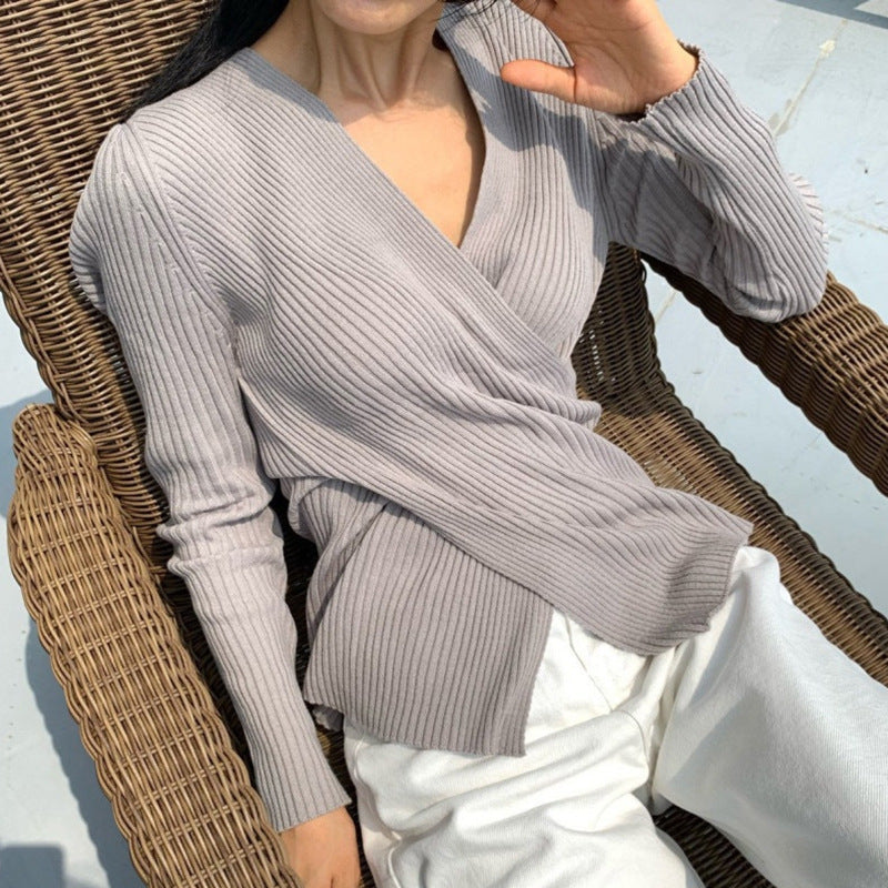 - Autumn Elegant Slimming V-neckline Cross Knitted Sweater For Women