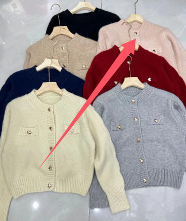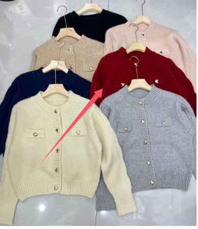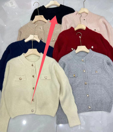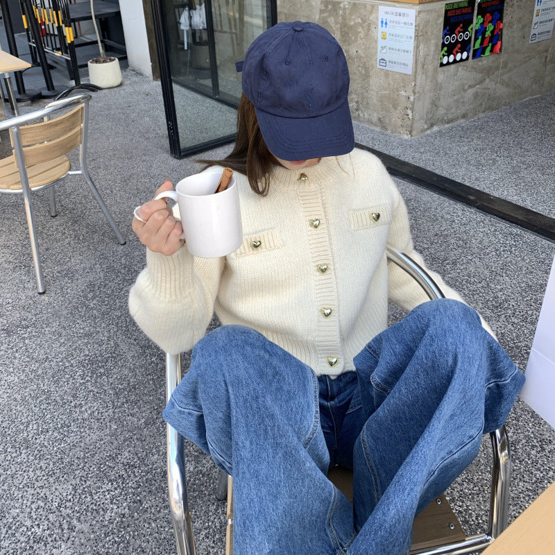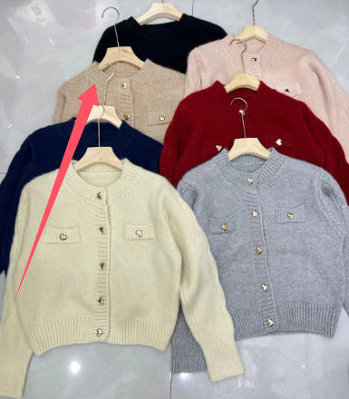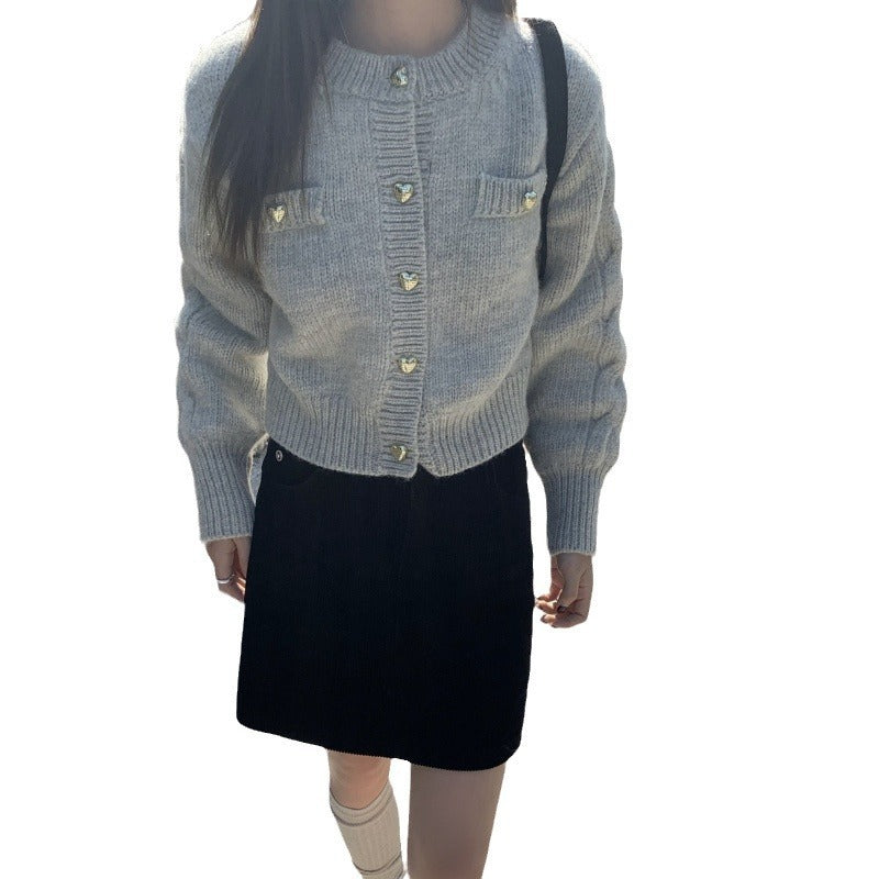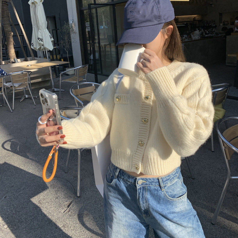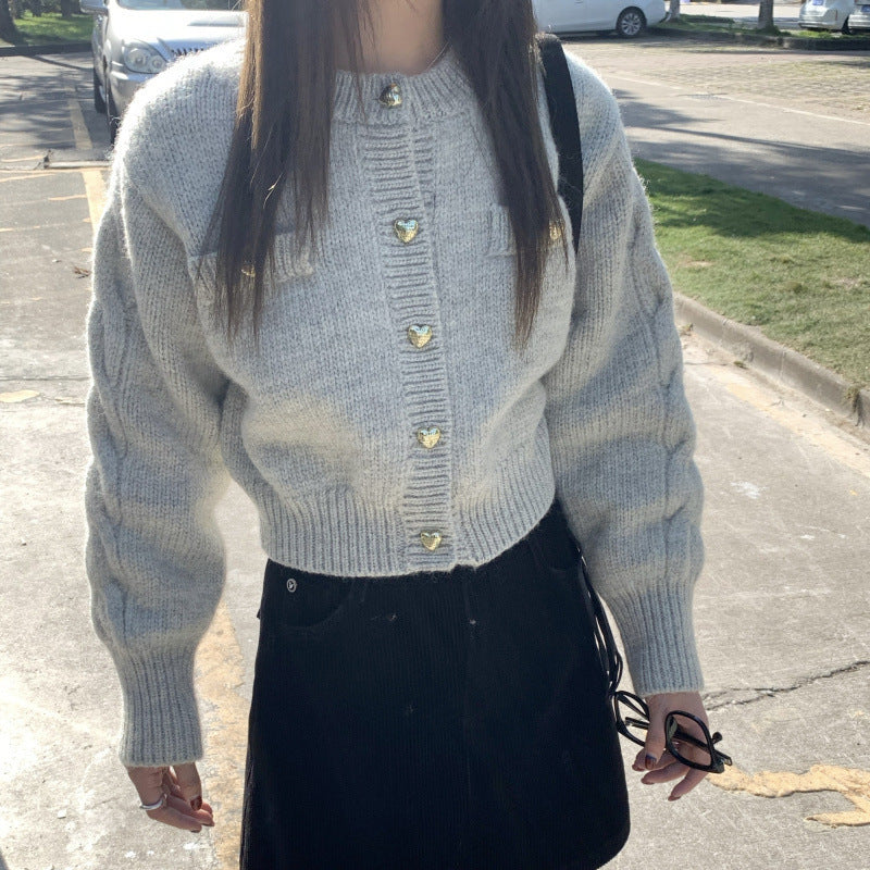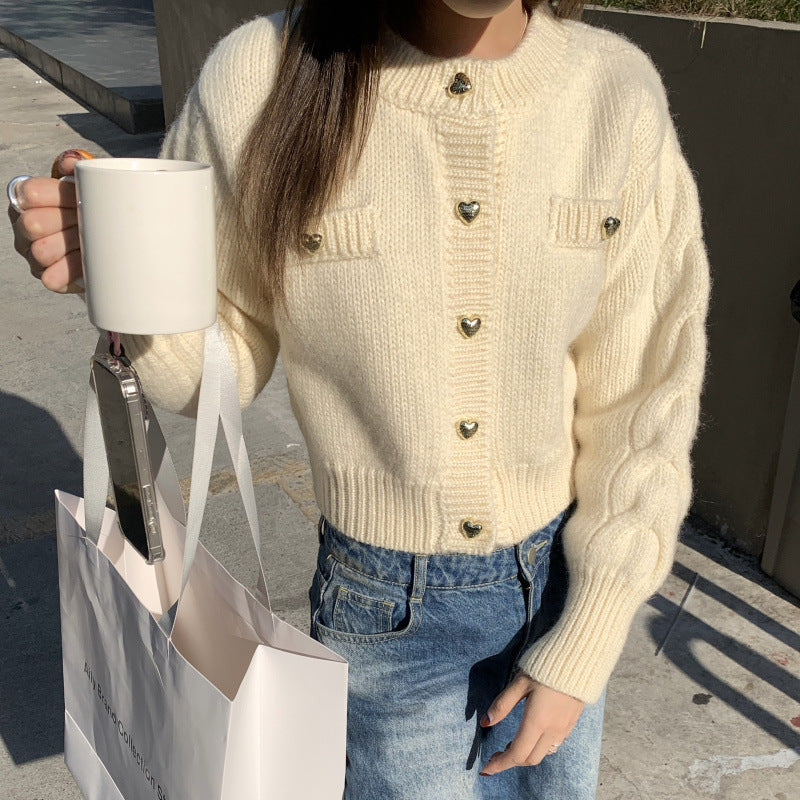 Heart Buckle Cable-knit Sweater Coat For Women Autumn