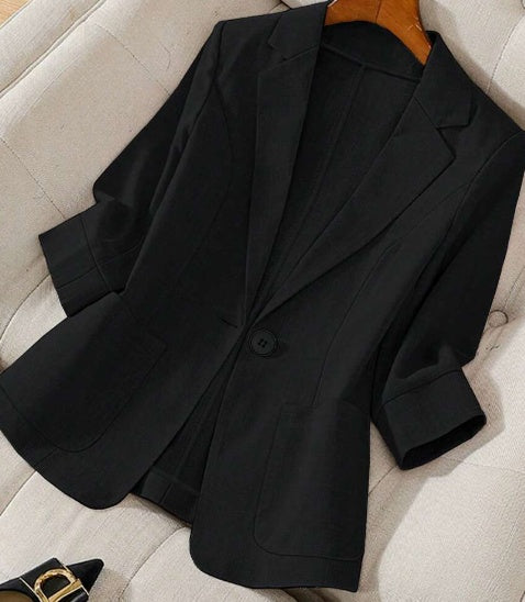 - Women's Spring Autumn Stand Collar Long Sleeve Casual Solid Color Blazer