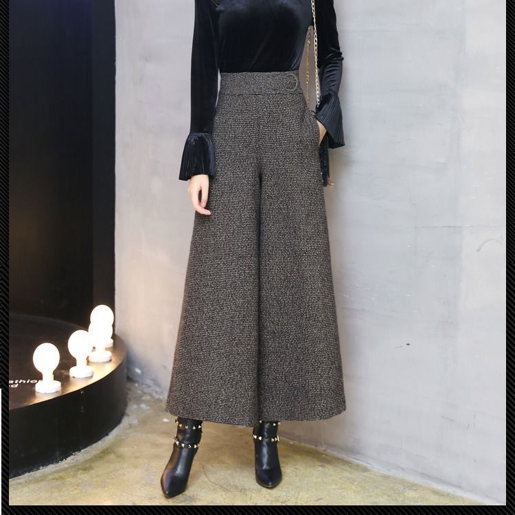 - Autumn And Winter New Woolen Wide-leg Pants Women