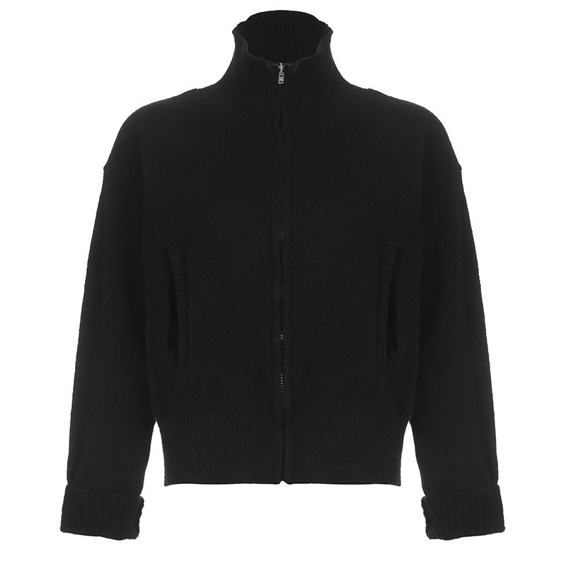 - Stand Collar Long Sleeve Loose Casual Simple Cardigan