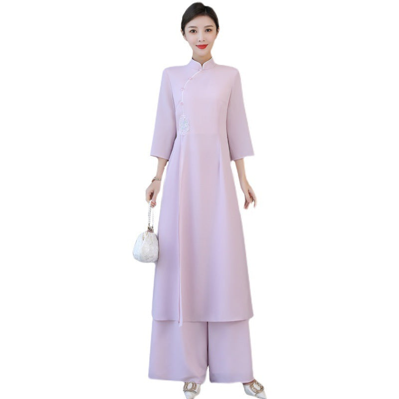 Embrace serene sophistication with the Liora Zen Elegance Set, a graceful cheongsam-inspired dress and pants duo with intricate printing for a timeless UK aesthetic. Pair with your favourite accessories to enjoy free shipping on orders over £50.